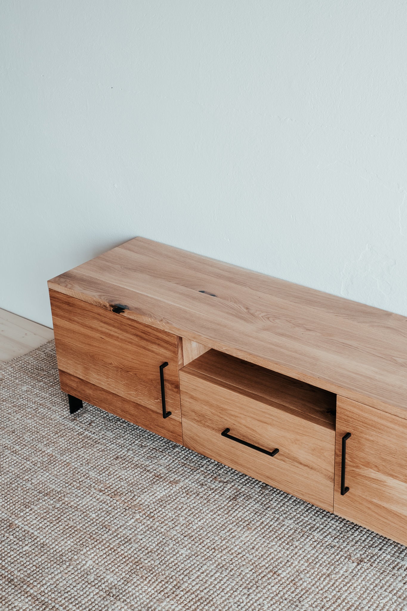 The basis of this TV table is solid oak wood of the highest quality. To ensure maximum quality and durability, we paid attention to every detail, such as the careful selection of wood, its humidity and treatment. Thanks to this, we were able to create a perfect piece of furniture from a beautiful tree.