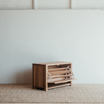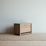 Praktický, elegantní a nenahraditelný. Tento estetický a minimalisticky působící botník z masivního dubového dřeva se stane vaším nenápadným pomocníkem. Uložte do něj své boty a nechte jej, aby se rázem stal designovým kusem nábytku.