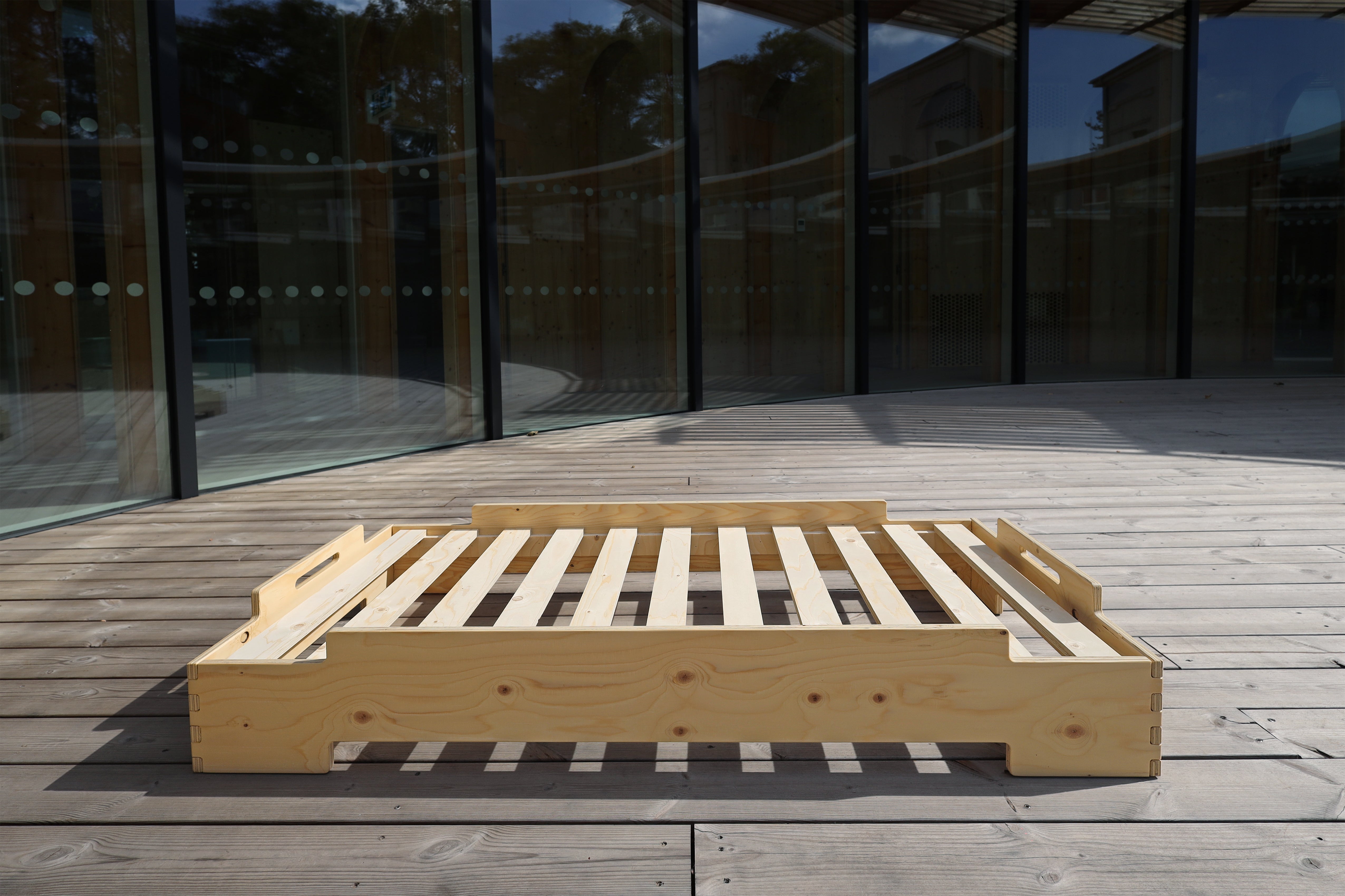 Postýlka má pevný rám i rošt ze smrkové překližky. Hrany postýlky jsou uzpůsobeny ke stohování, takže se dají jednoduše naskládat na sebe.