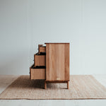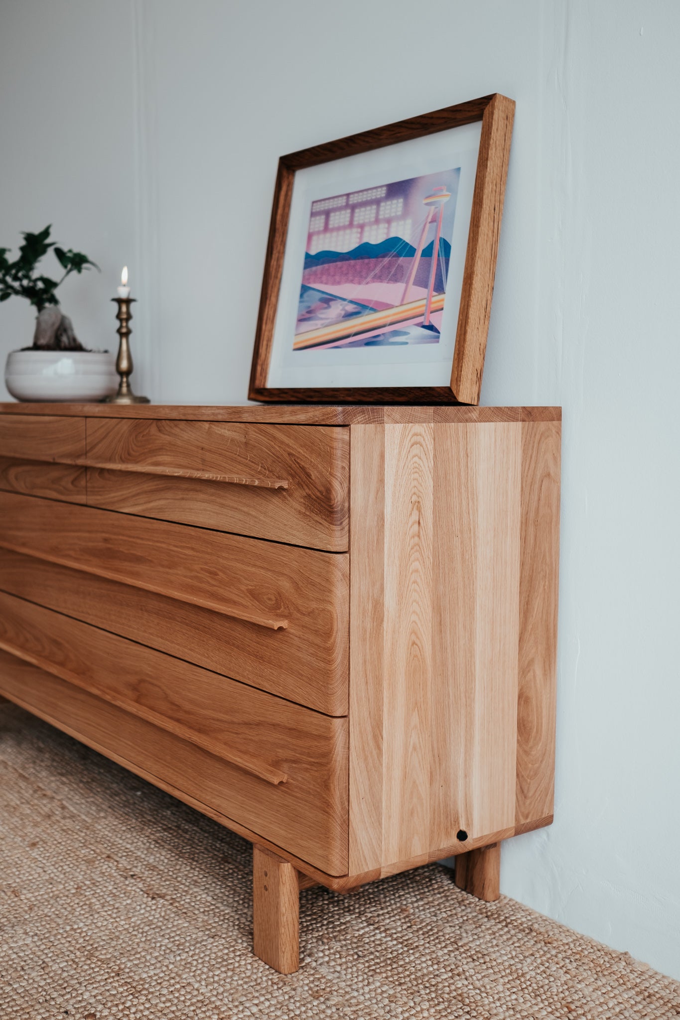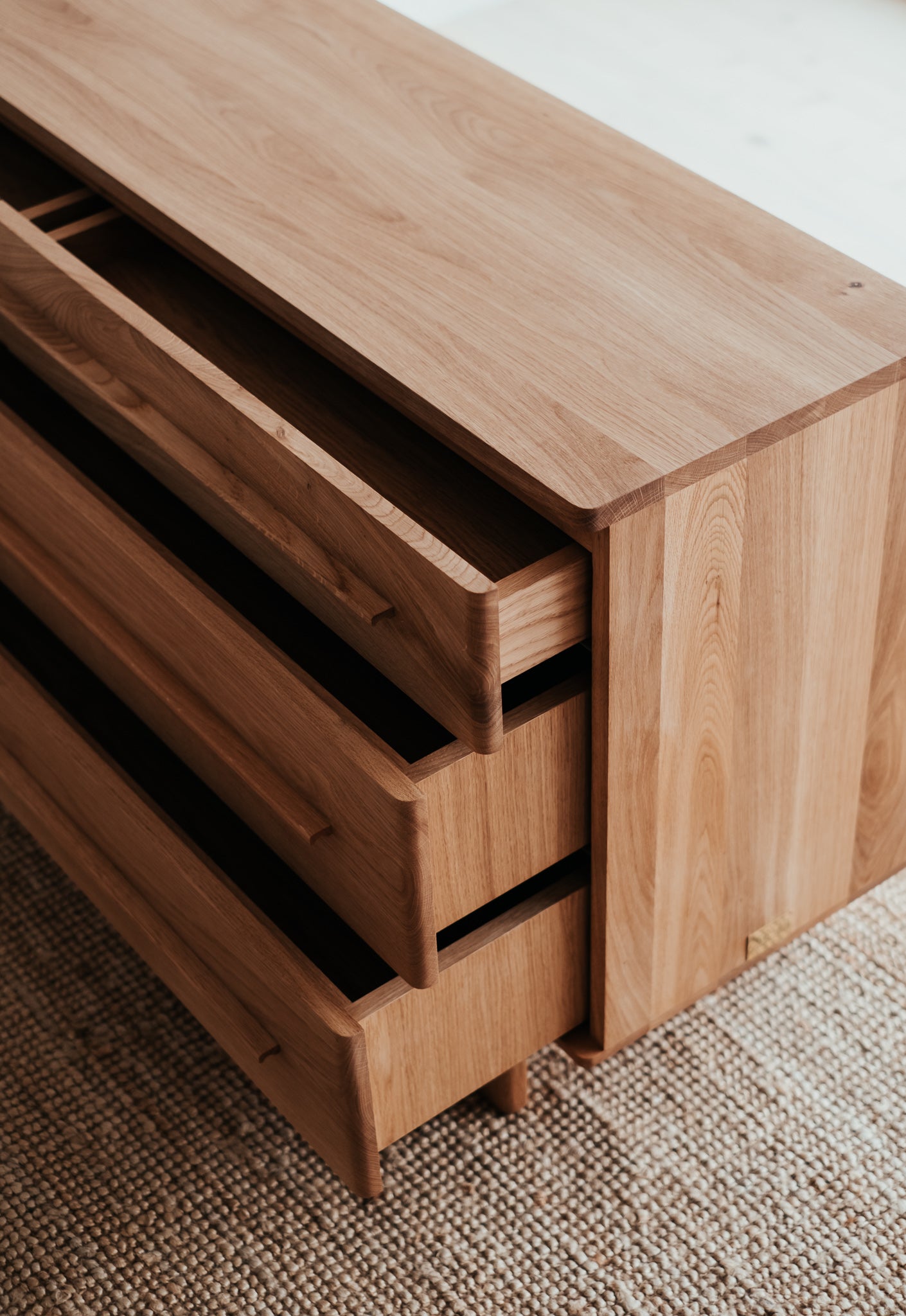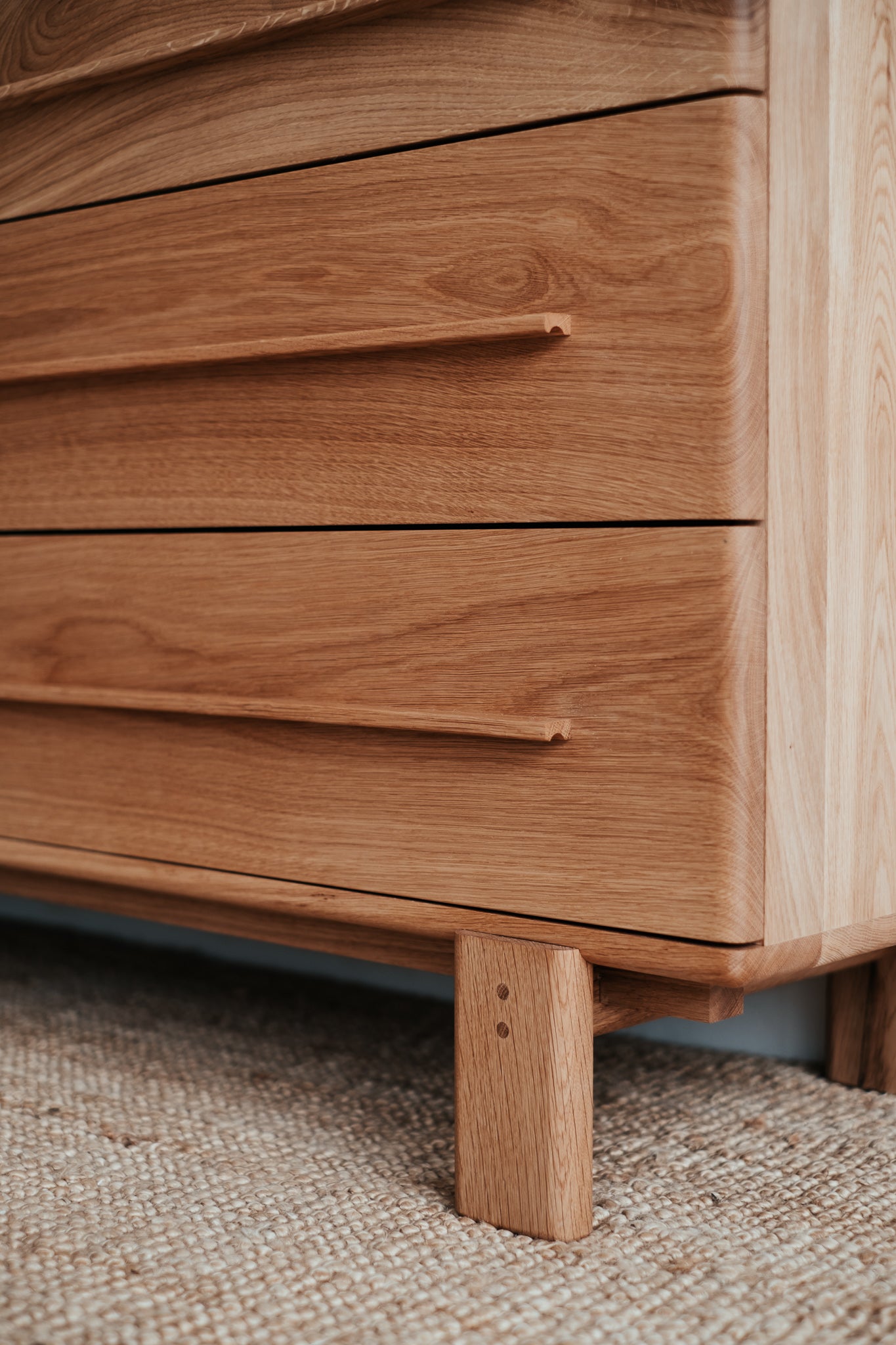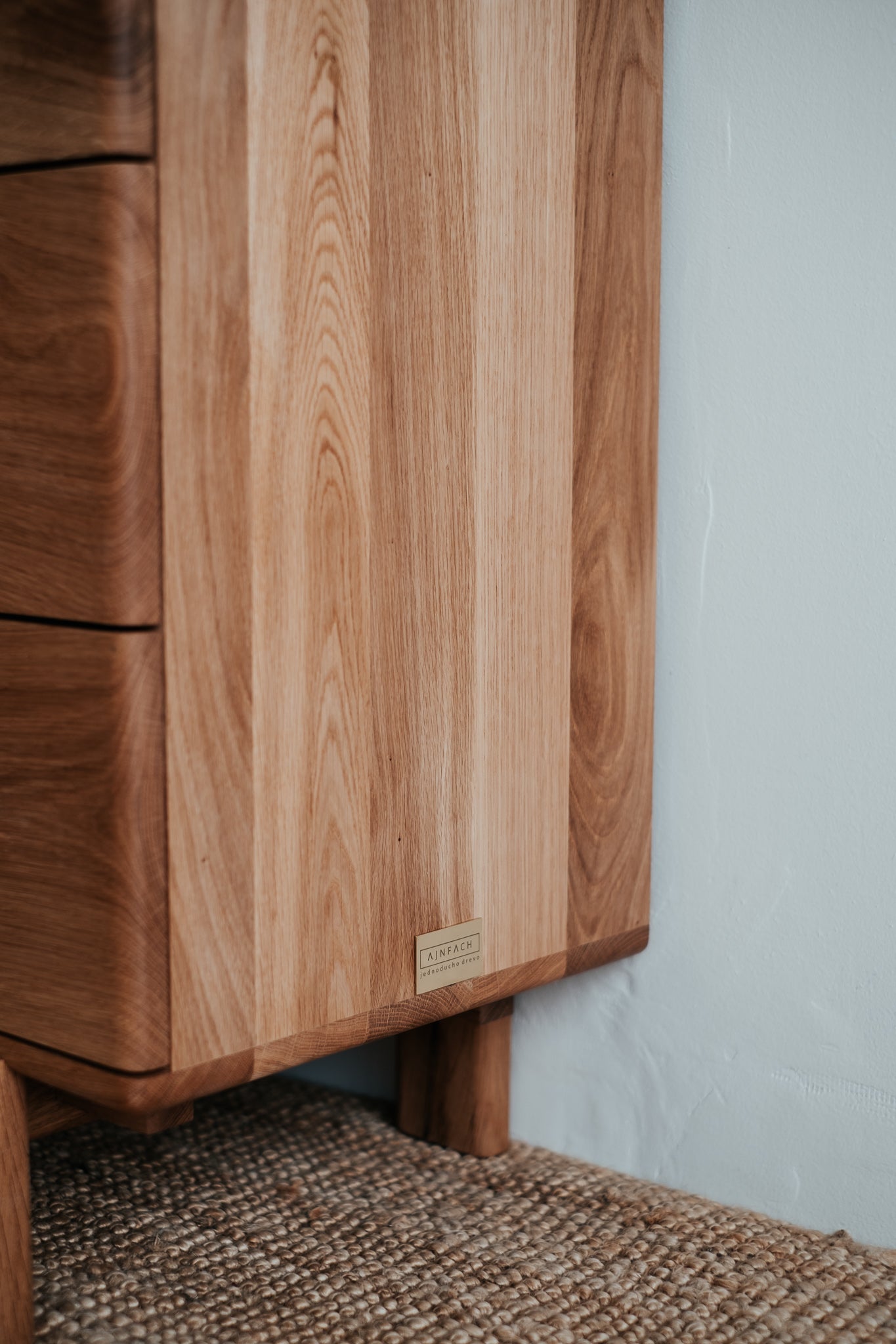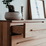 Základem této komody je masivní dubové dřevo nejvyšší kvality. Abychom zabezpečili maximální kvalitu a životnost, dbali jsme na každý detail, jako je pečlivý výběr dřeva, jeho vlhkost i ošetření. Díky tomu jsme z krásného stromu dokázali vytvořit dokonalý kus nábytku.