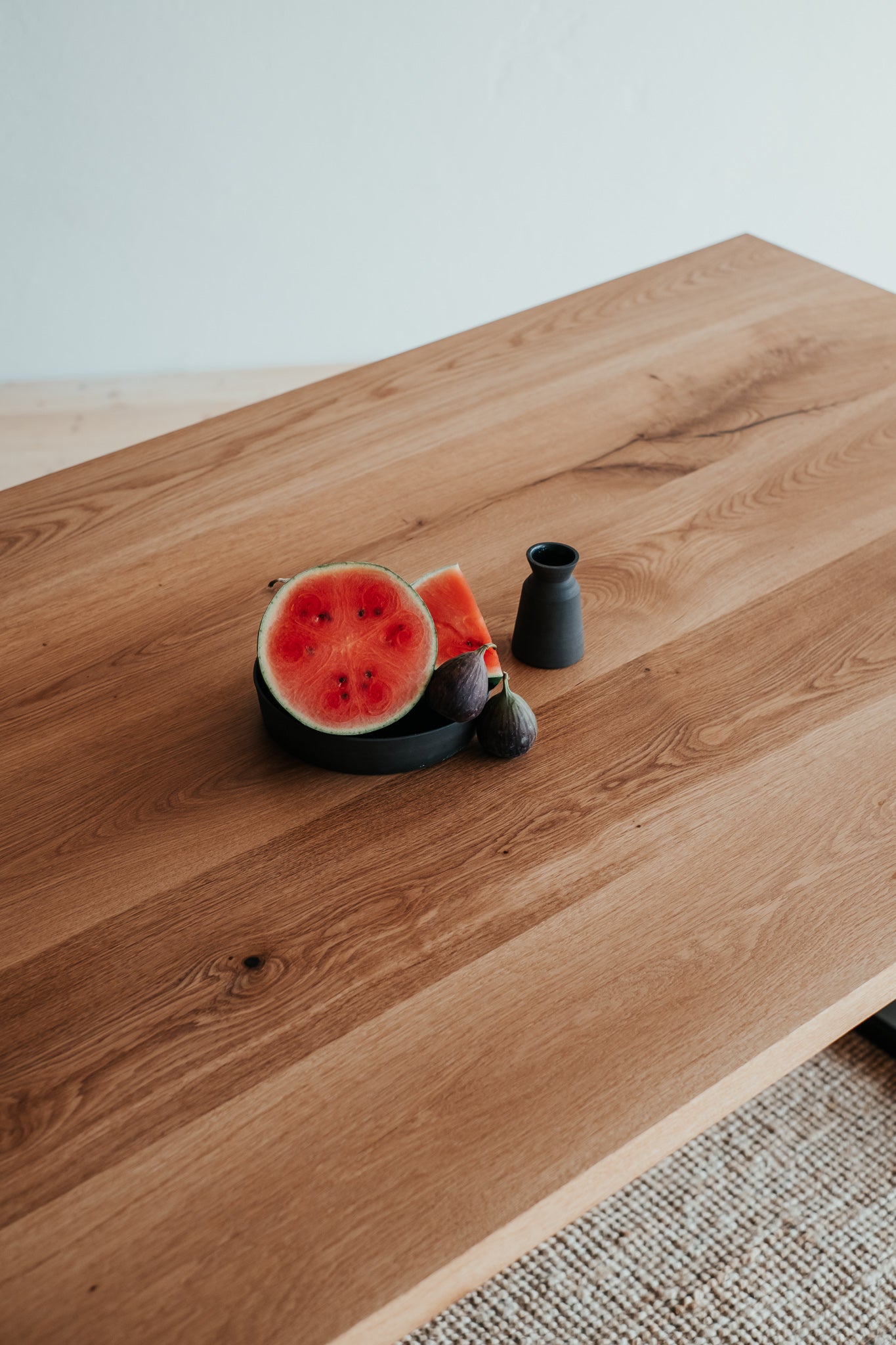 Barva: Bezbarvý přírodní voskový olej (deska). Černá hladká prášková barva (nohy).