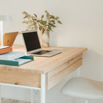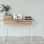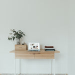 Elegance, ve které je ukryta čistá funkčnost. Tak, jak je praktický, je i jednoduše nádherný. Čisté linie a minimalistický design ukrývá nejen řešení pro úklid kabelů, ale také dvě užitečné zásuvky, které oceníte při práci. Železné nohy v bílé nebo černé barvě oživují design a krásně jej doplňují. Kromě přírodní barvy dubu si můžete vybrat také jemně obílený odstín.