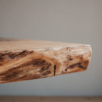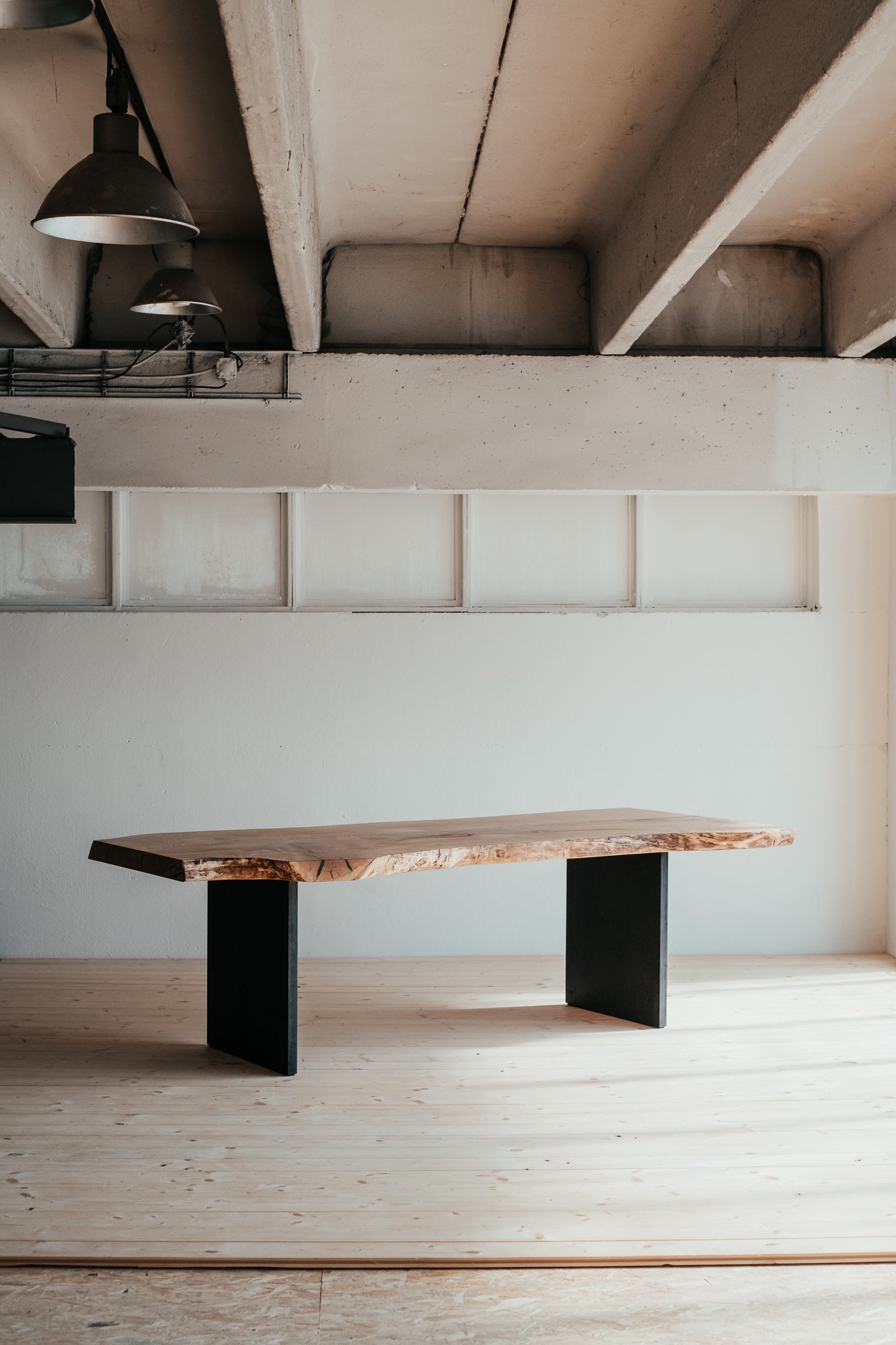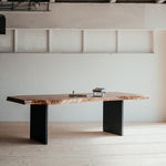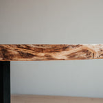 Stolová deska je nádherný, masivní kus dubu, který vznikl podélným průřezem důsledně vybraného stromu. Vyniká svojí přirozeností a nepravidelnými liniemi. Jeho syrová síla je doplněna krásou přídody. Černé nohy z masivního dubu elegantně podtrhují unikátnost tohoto stolu.