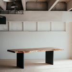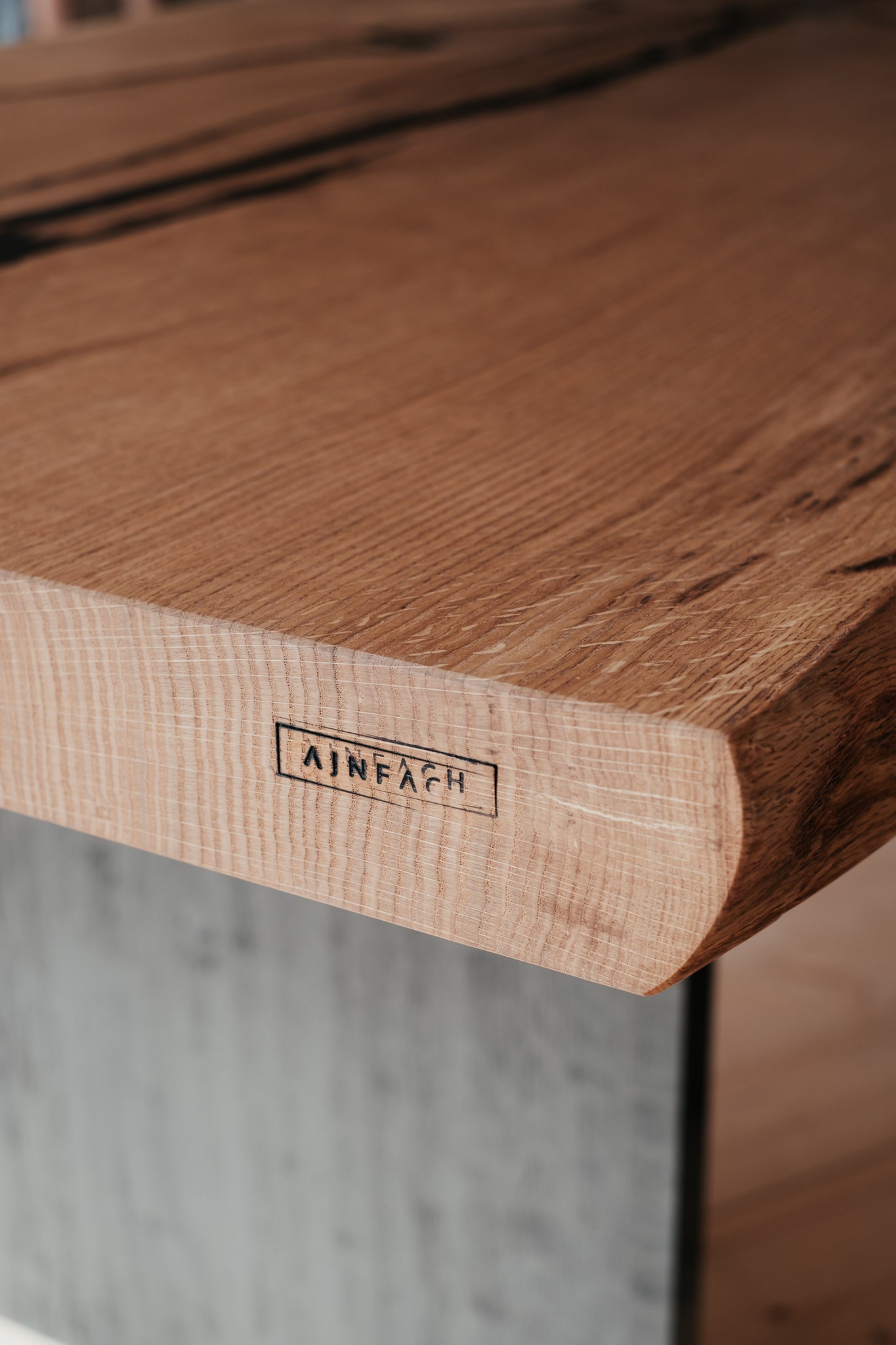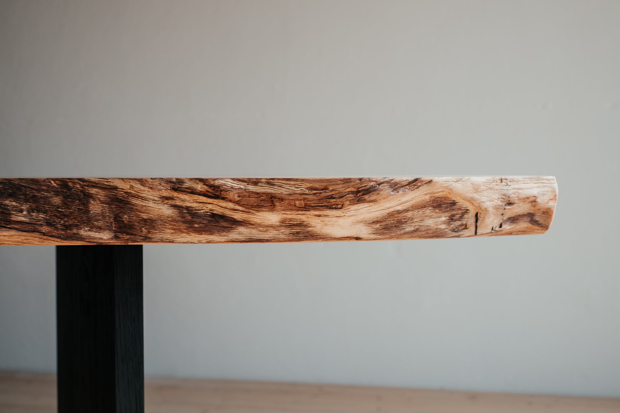 Jedinečný a mocný. Monolit v každém smyslu slova. Tento nádherný kus přírody vzniká podélným průřezem dubového kmene, ve kterém zachováváme všechny jeho nepravidelnosti, sílu a krásu. V tom tkví jeho jedinečnost. Tak, jako neexistují dva totožné stromy, nenajdete ani dva stejné stoly. Nohy jsou rovněž z dubového dřeva natřeného na černo, aby vyniklo to, co drží.
