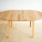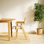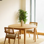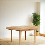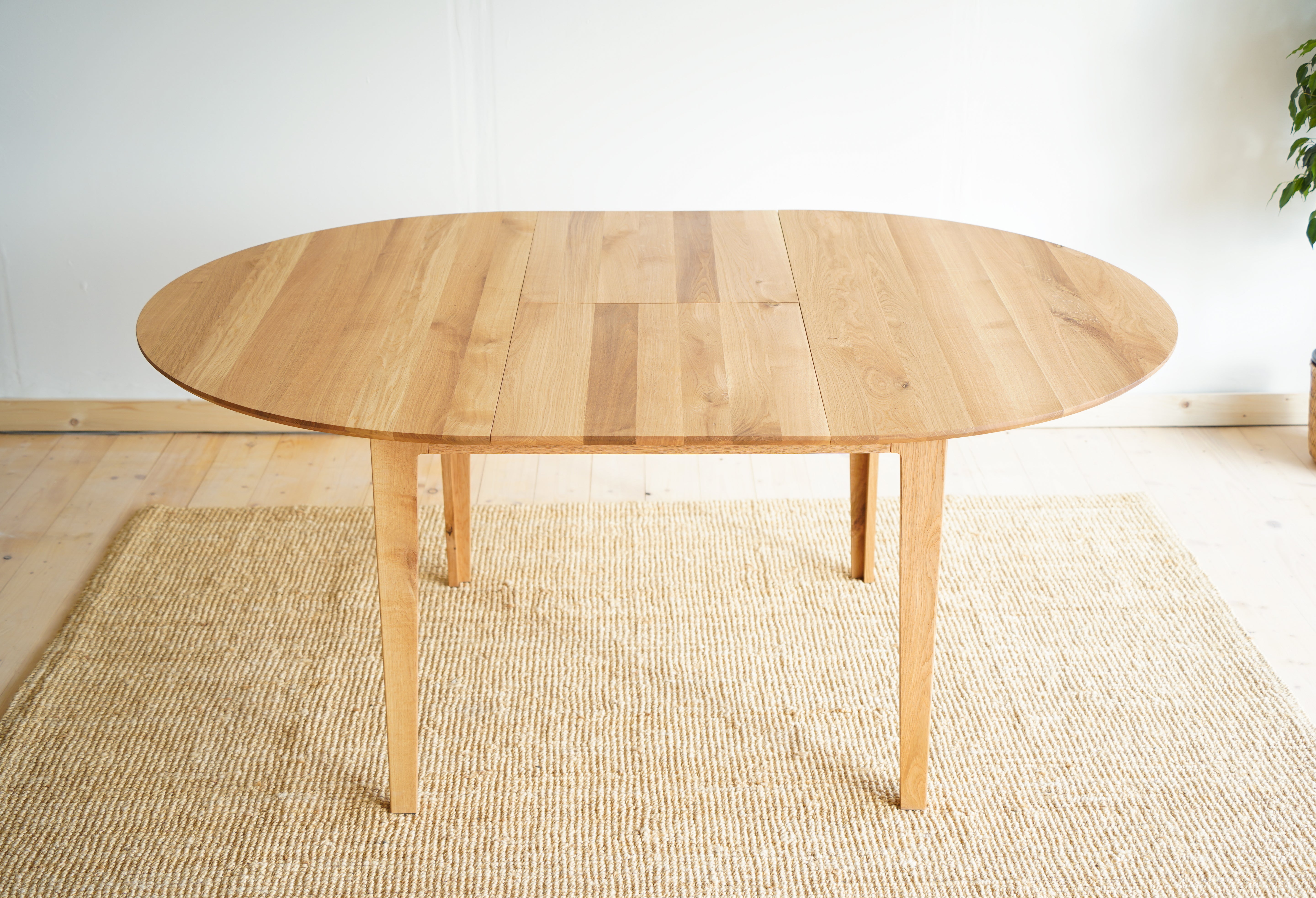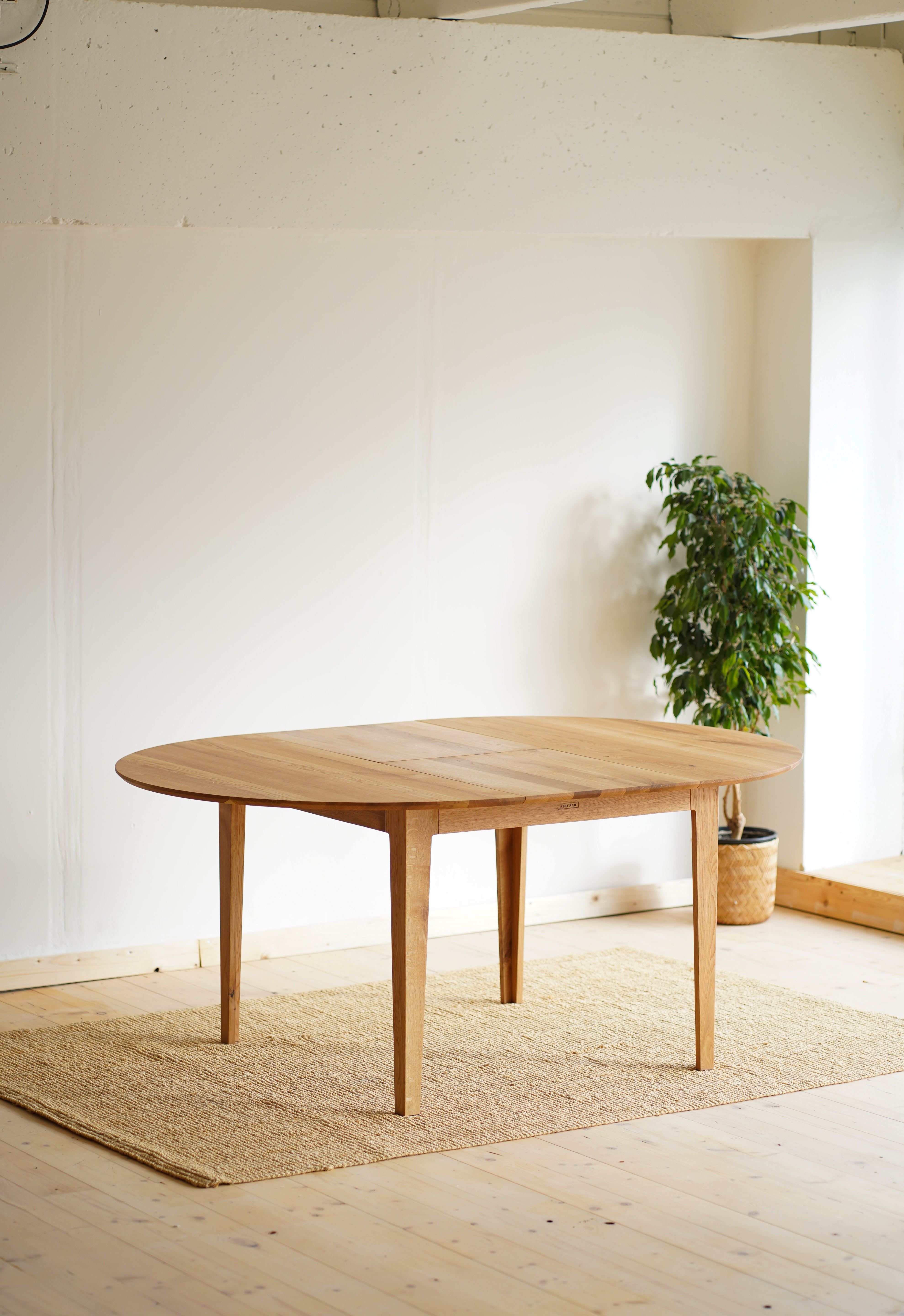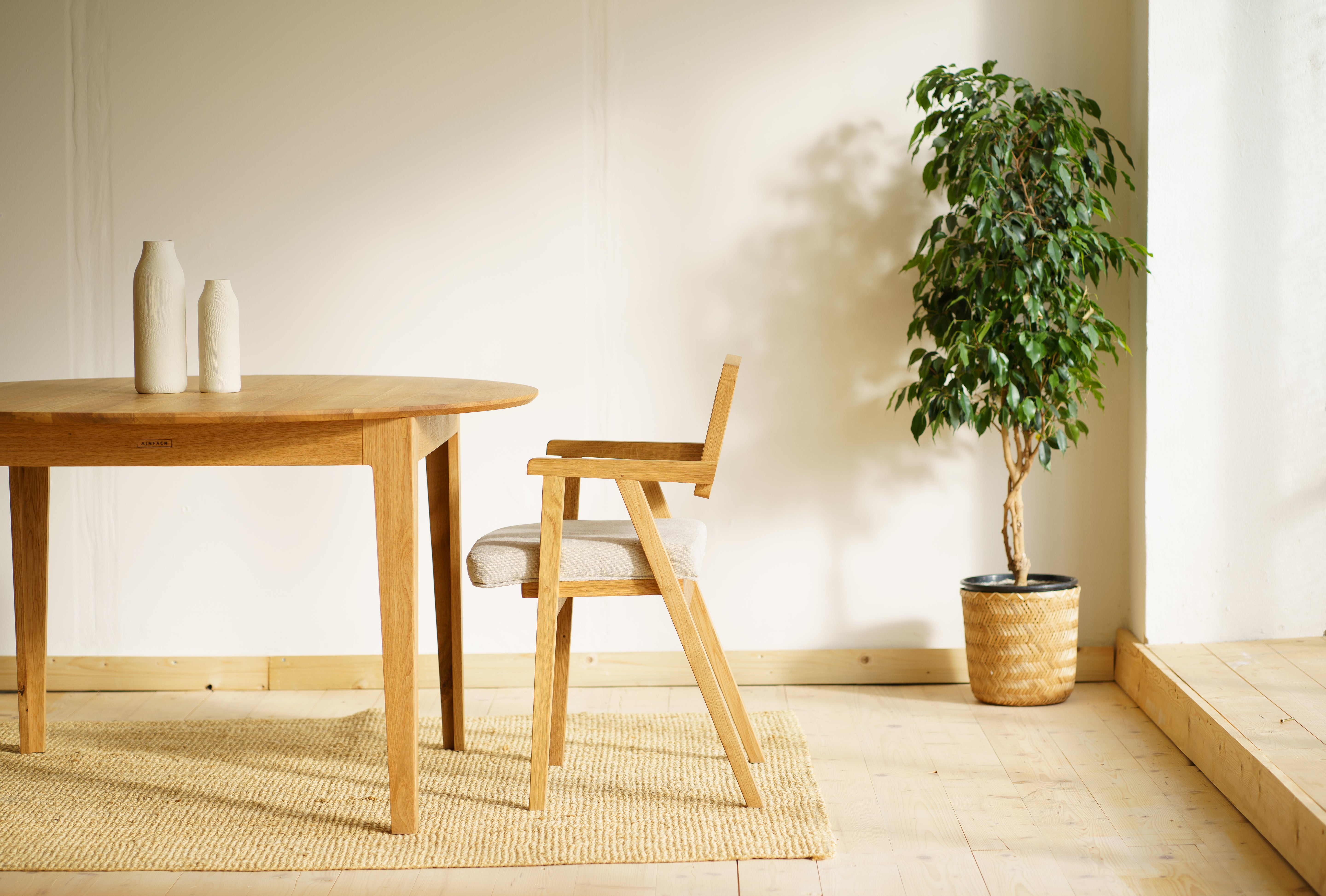 Bezbarvý, přírodní voskový olej zvýrazňuje estetickou kresbu dřeva a snadnou údržbu. Kulatý tvar desky přináší čistotu a estetiku, díky které krása tohoto stolu ještě více vynikne.