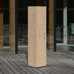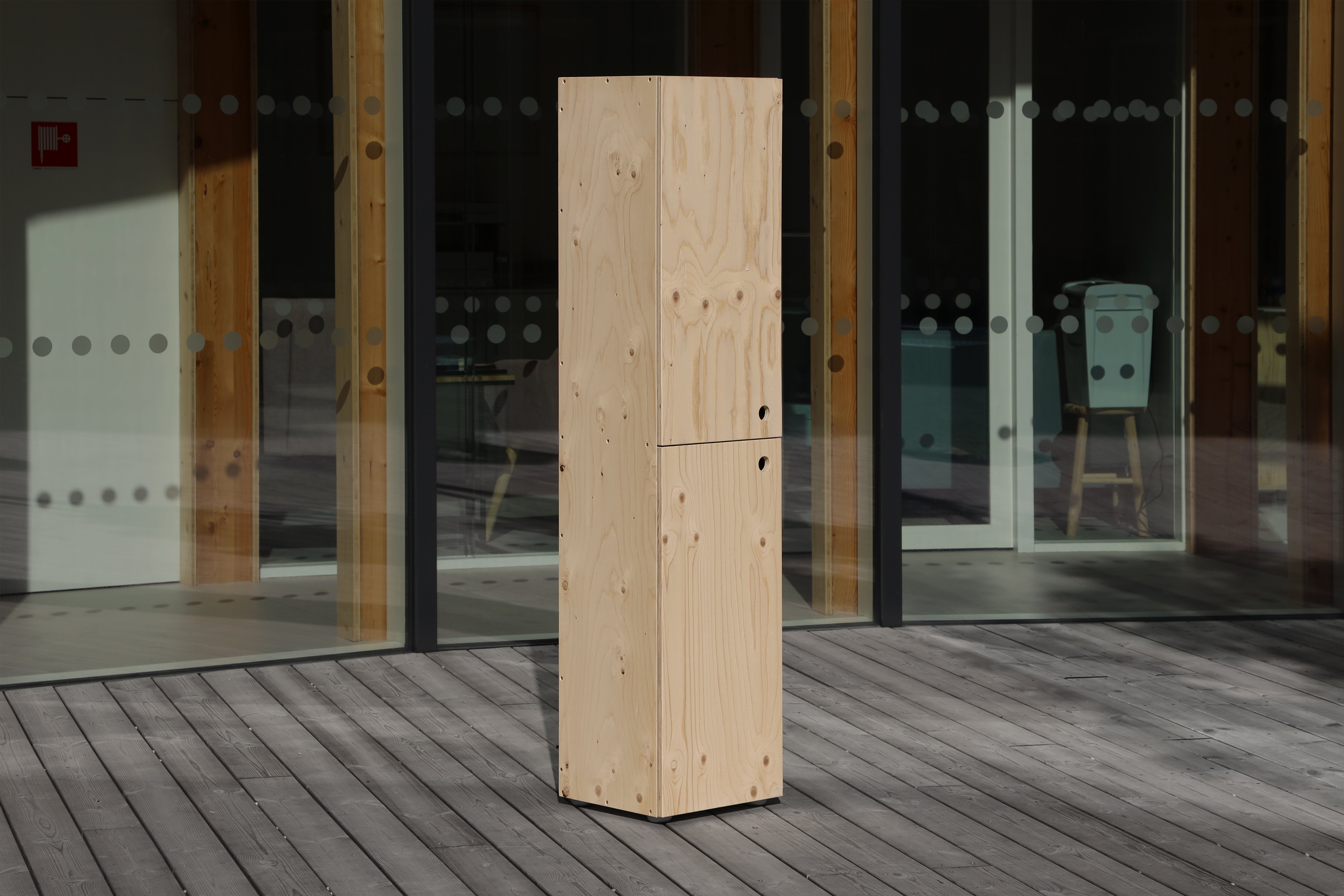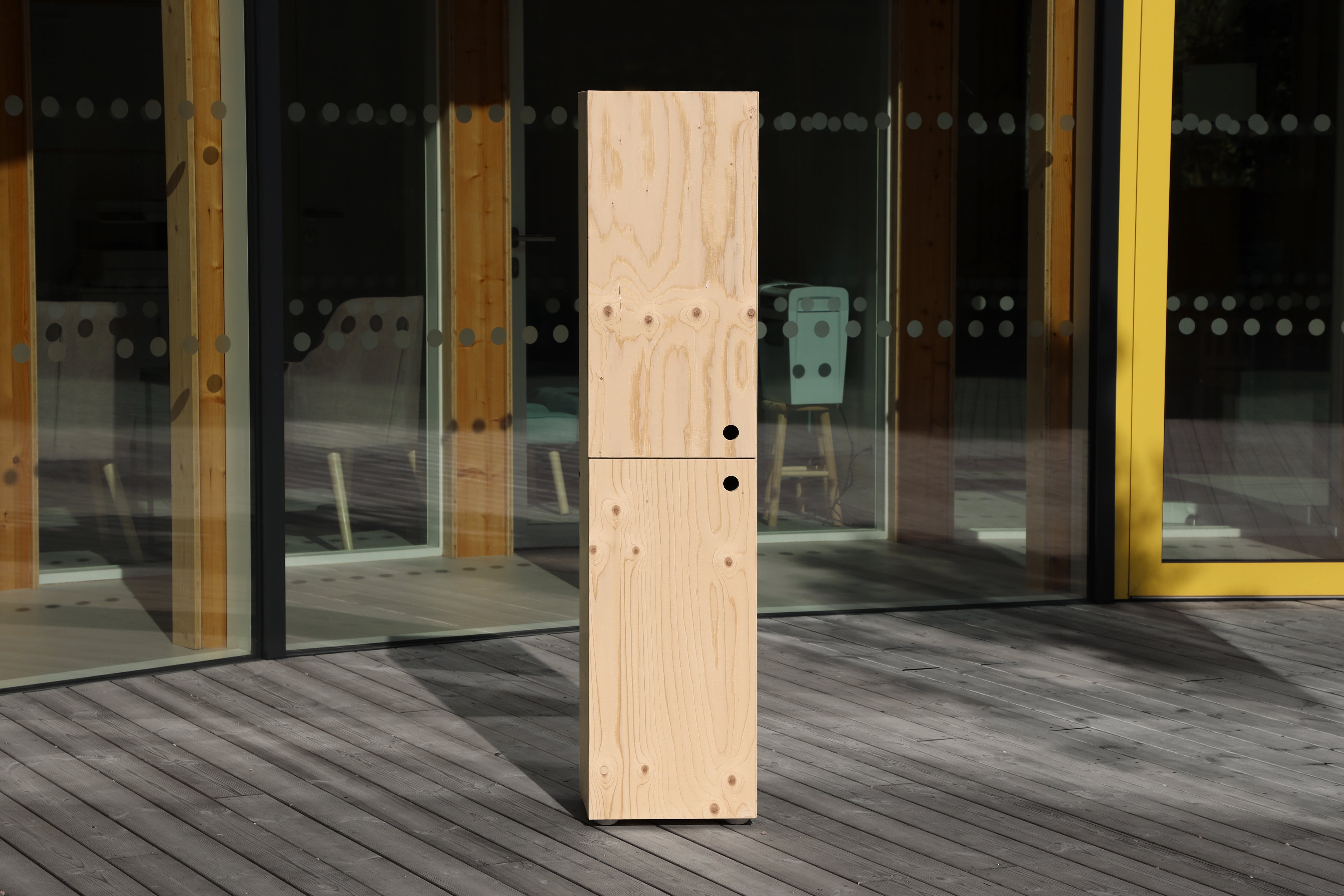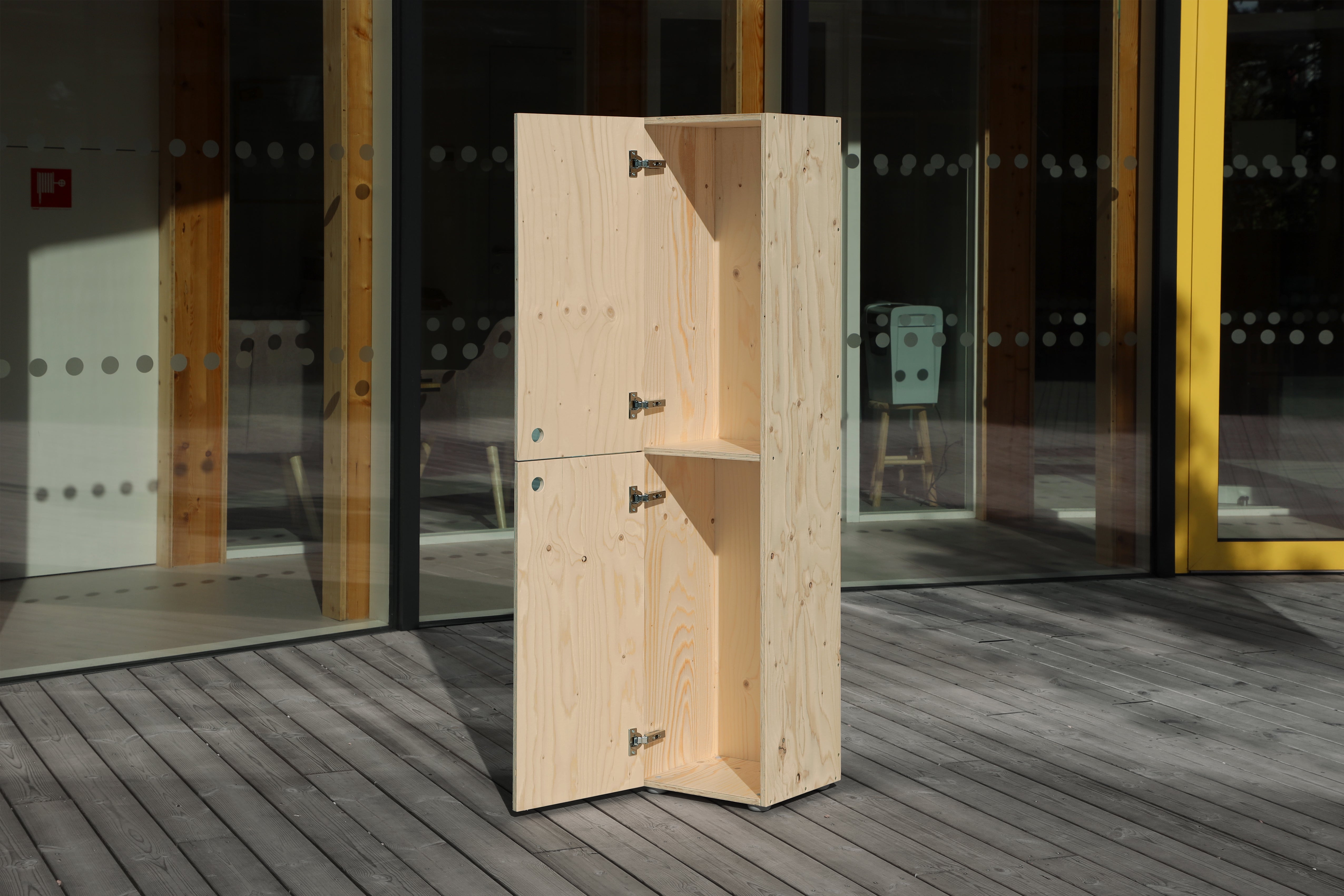 Důkaz, že velké věci se dají dělat iv malém. Dokonale jednoduchá skříňka z kvalitní smrkové překližky ukrývá za dvojicí dvířek velký prostor pro oblečení pro dvě děti. Díky ideálnímu vertikálnímu členění nezabere moc místa a stále vypadá skvěle.